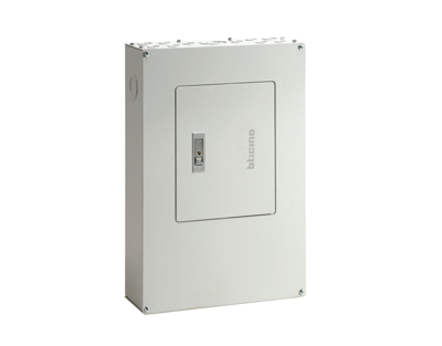 Caja con interior y frente (flejado) Centro de carga de 12 polos, zapatas principales 125 A, 240/120V~,1F-3H, 10 kA, de empotrar.